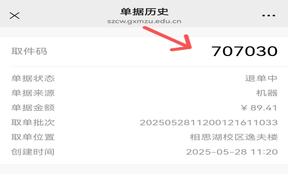 第二步:按推送的退單信息提醒,正確輸入取件碼。