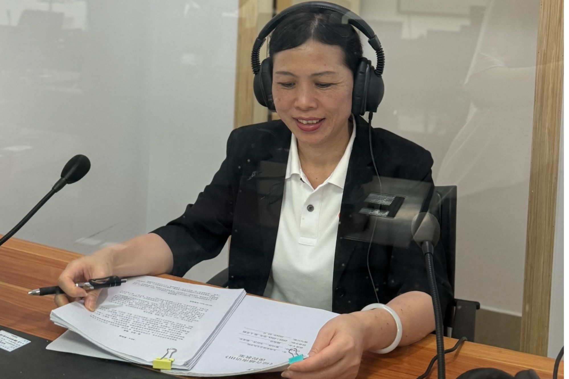 黎巧萍老師在同聲傳譯教室進(jìn)行越南語翻譯教學(xué)