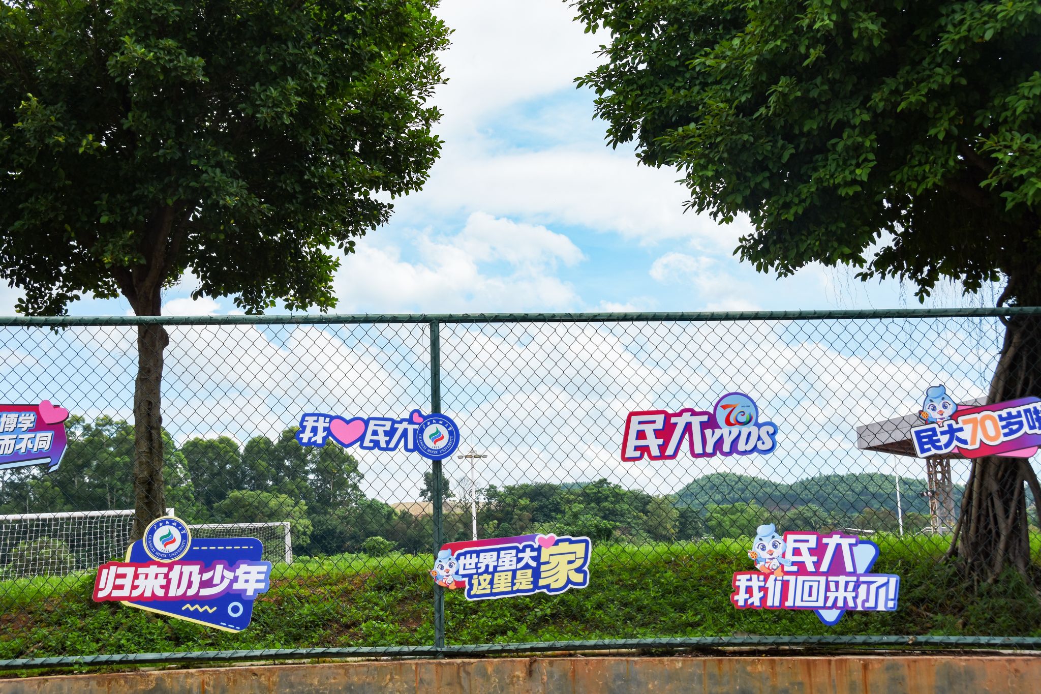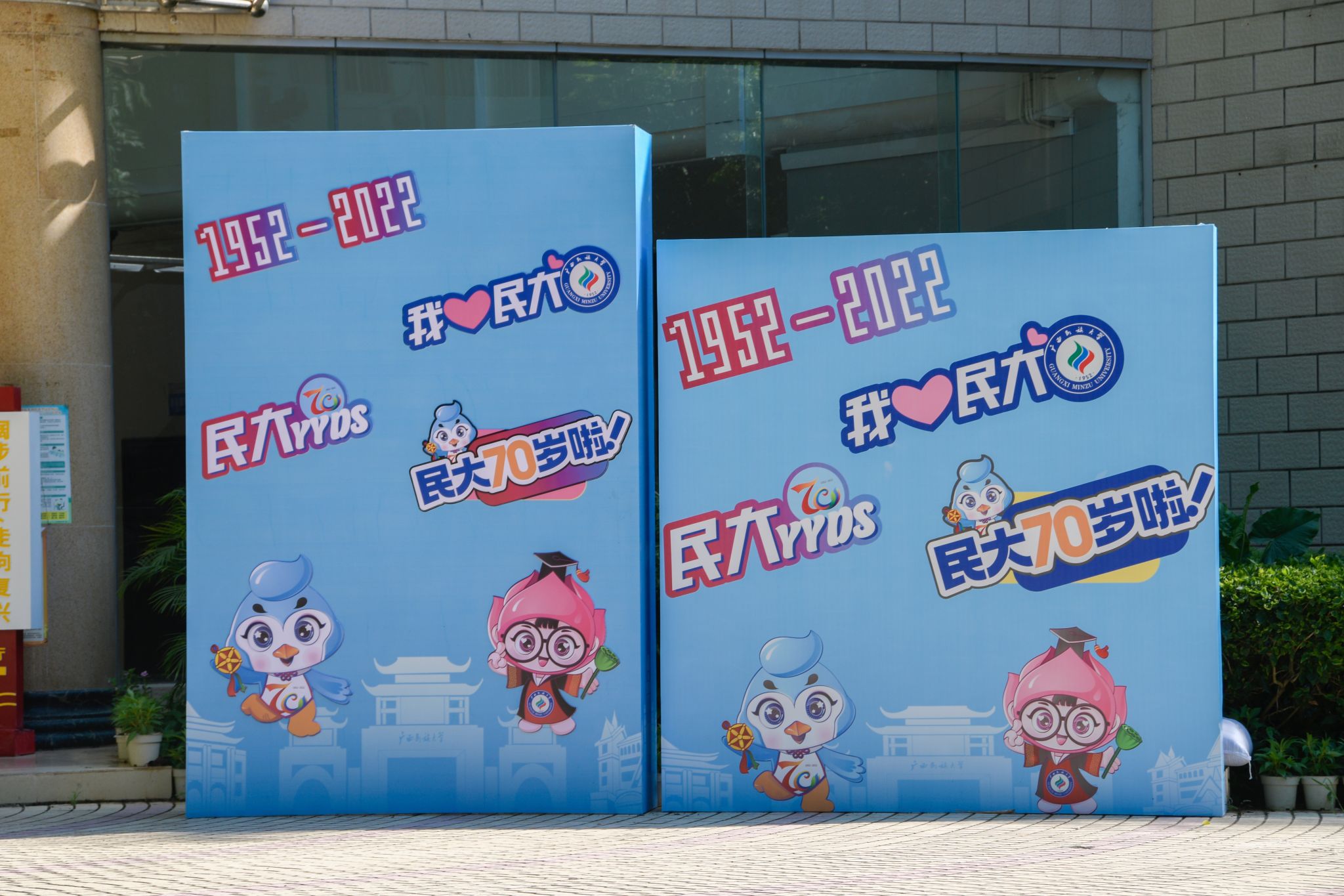 夏日清風(fēng)微撫,藍天白云照應(yīng)下的標(biāo)語,是獨屬于民大的生日浪漫。