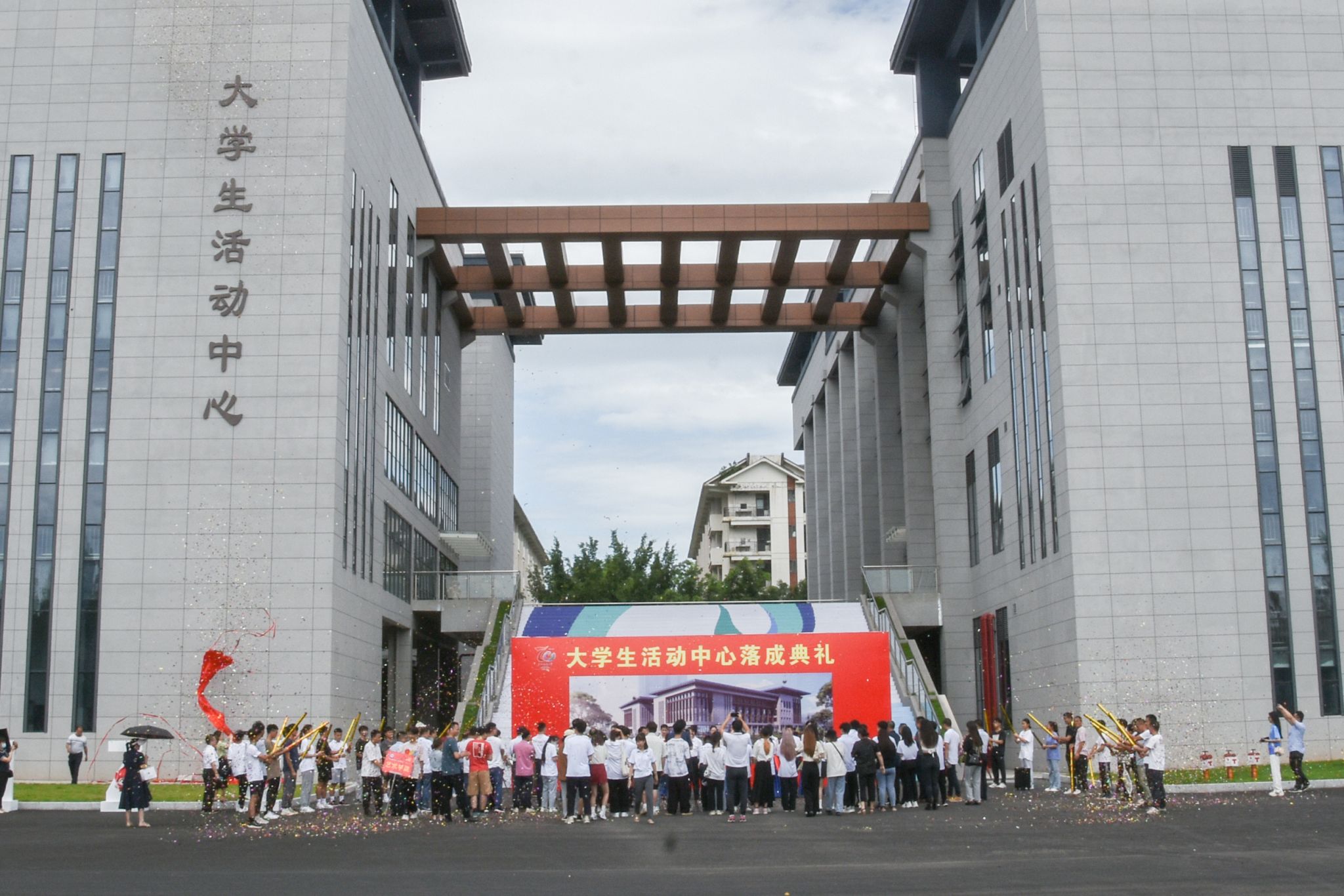 武鳴校區體育館、相思湖校區文化研習基地、思源湖校區大學生活動中心落成剪彩,將促進校園文化建設,為學生提供更多特色活動內容。