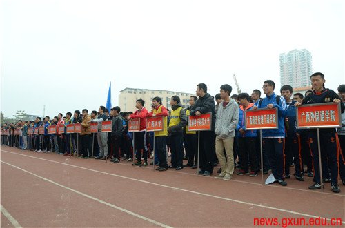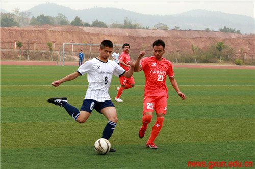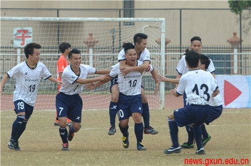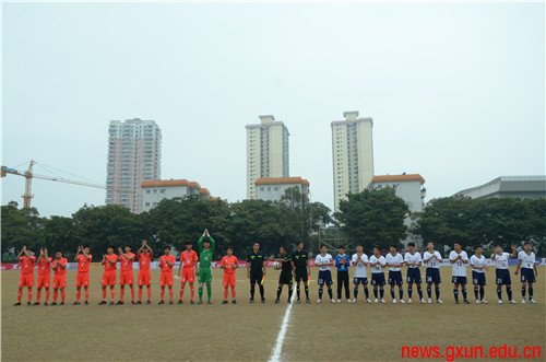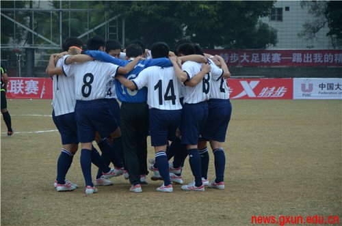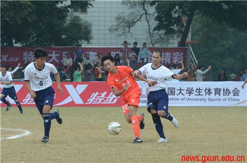 【大學生通訊社報道】由中國大學生體育協會主辦、廣西學校體育衛生藝術學會承辦、我校協辦的2014—2015“特步”中國大學生足球聯賽廣西賽區選拔賽開賽,旨在增強大學生體質,推動我區大學生足球運動的發展,豐富大學校園文化。來自廣西高校的2支超級組隊伍和30支校園組隊伍于1月4日—11日在廣西民族大學和廣西經濟干部管理學院足球場展開共計63場較量。(編輯:張云海 實習編輯:羅艷妮 校對:潘鑫蘭 潘蘭央)