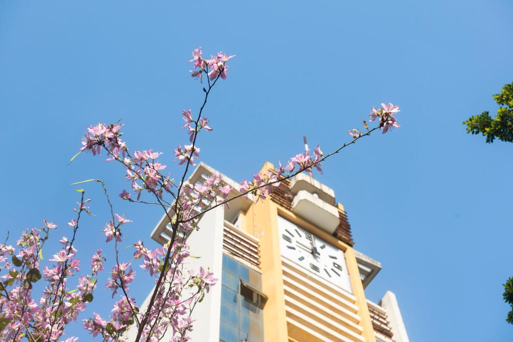 校園花開,是所有美好的開始,迎著四月的風,花兒在風中微笑。
