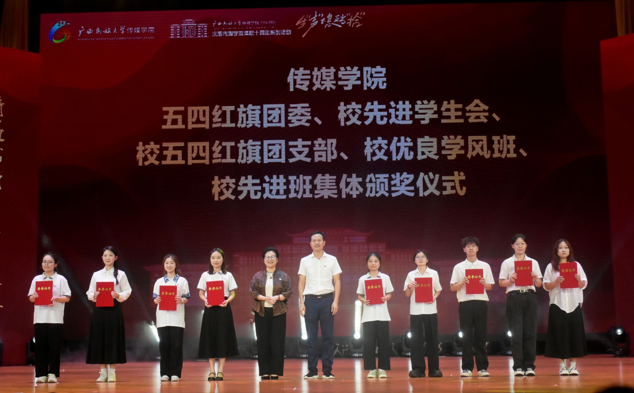 【大學(xué)生通訊社報道】5月26日,傳媒學(xué)院建院十周年暨2024屆畢業(yè)晚會在思源湖校區(qū)大學(xué)生活動中心禮堂舉行。學(xué)校黨委副書記陳銘彬與傳媒學(xué)院師生共同觀看晚會。