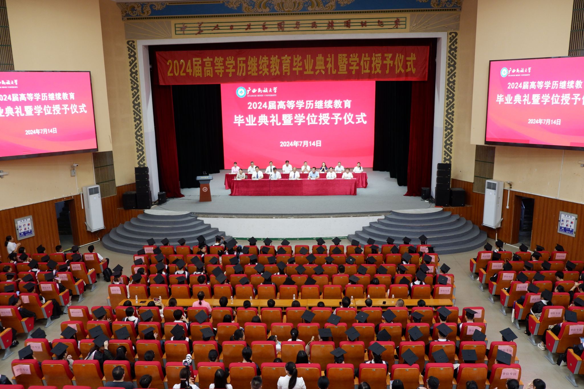 【大學生通訊社報道】7月14日,廣西民族大學在相思湖校區大禮堂舉行2024屆高等學歷繼續教育畢業典禮暨學位授予儀式。副校長姜明國出席典禮并講話,近900名畢業生參加典禮。