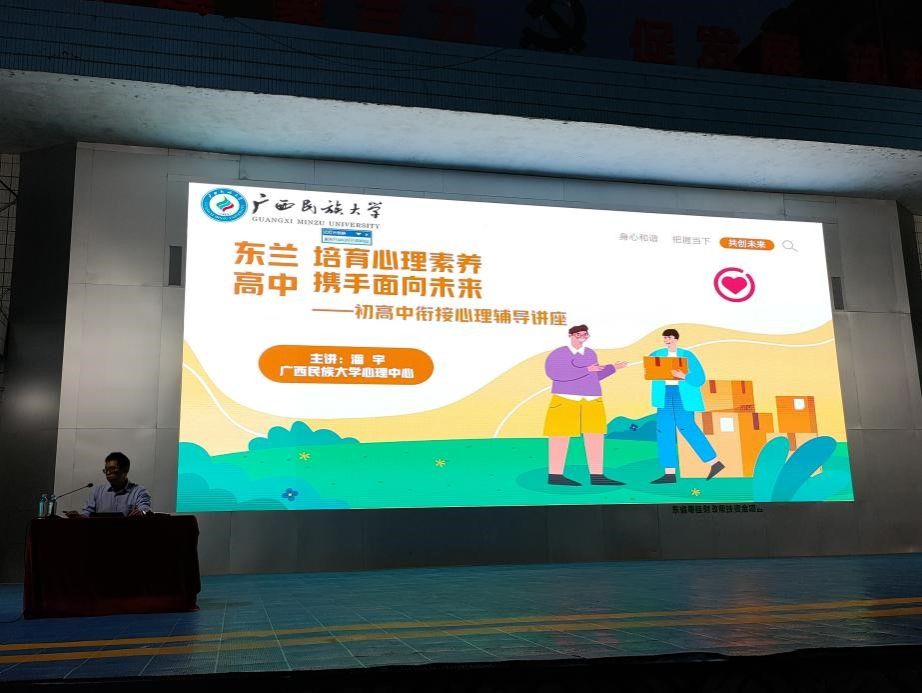 8月30日,廣西民族大學大學生心理健康教育中心專職教師潘宇、杜江南到東蘭縣高級中學開展“培育心理素養,攜手面向未來”心理主題講座。