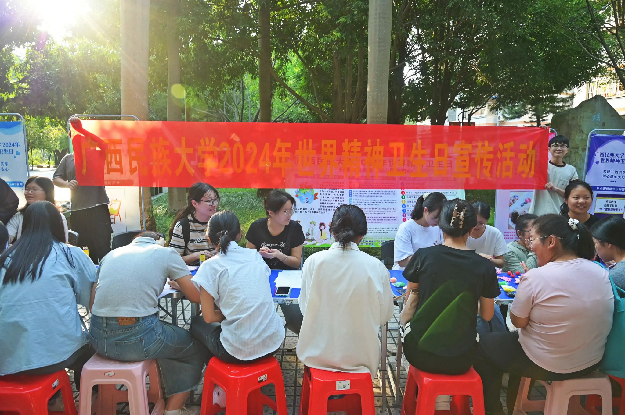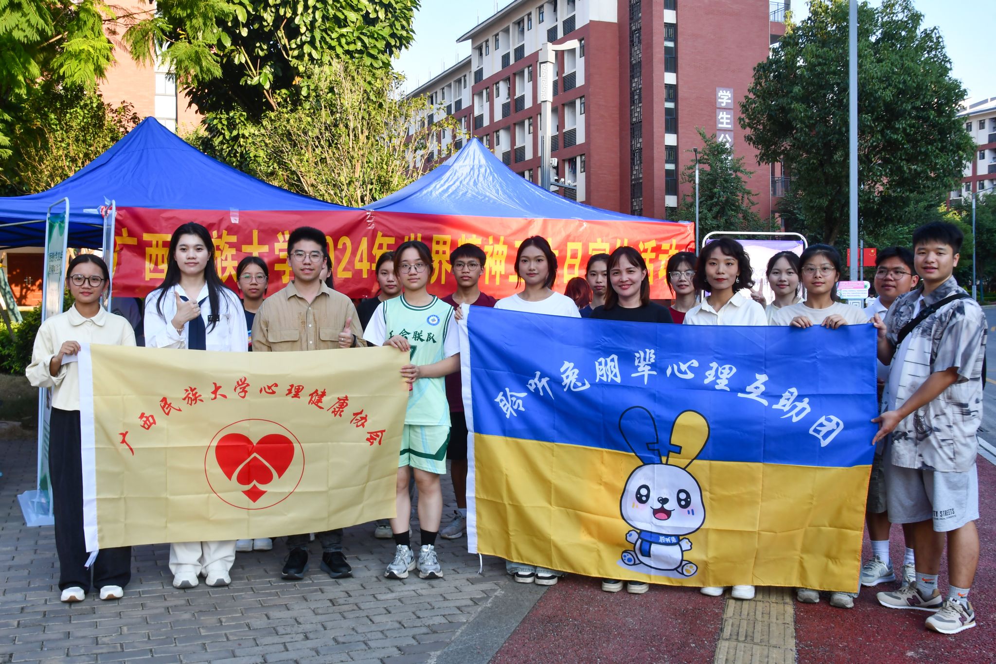 【大學(xué)生通訊社報道】10月10日,廣西民族大學(xué)分別在相思湖校區(qū)五坡文化廣場、思源湖校區(qū)知味軒餐廳門口、武鳴校區(qū)食堂門口開展主題為“共建共治共享,同心健心安心”世界精神衛(wèi)生日宣傳活動。