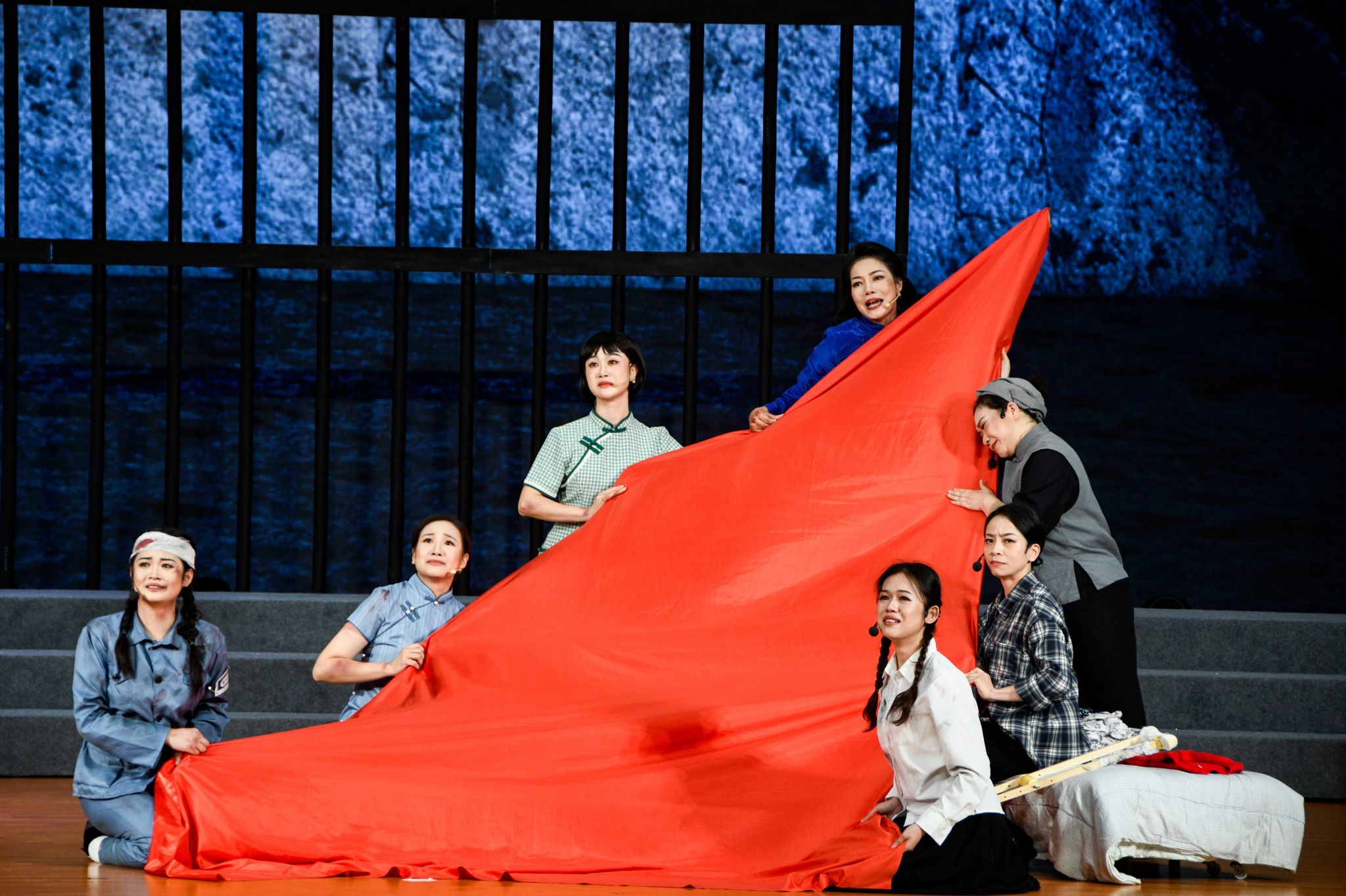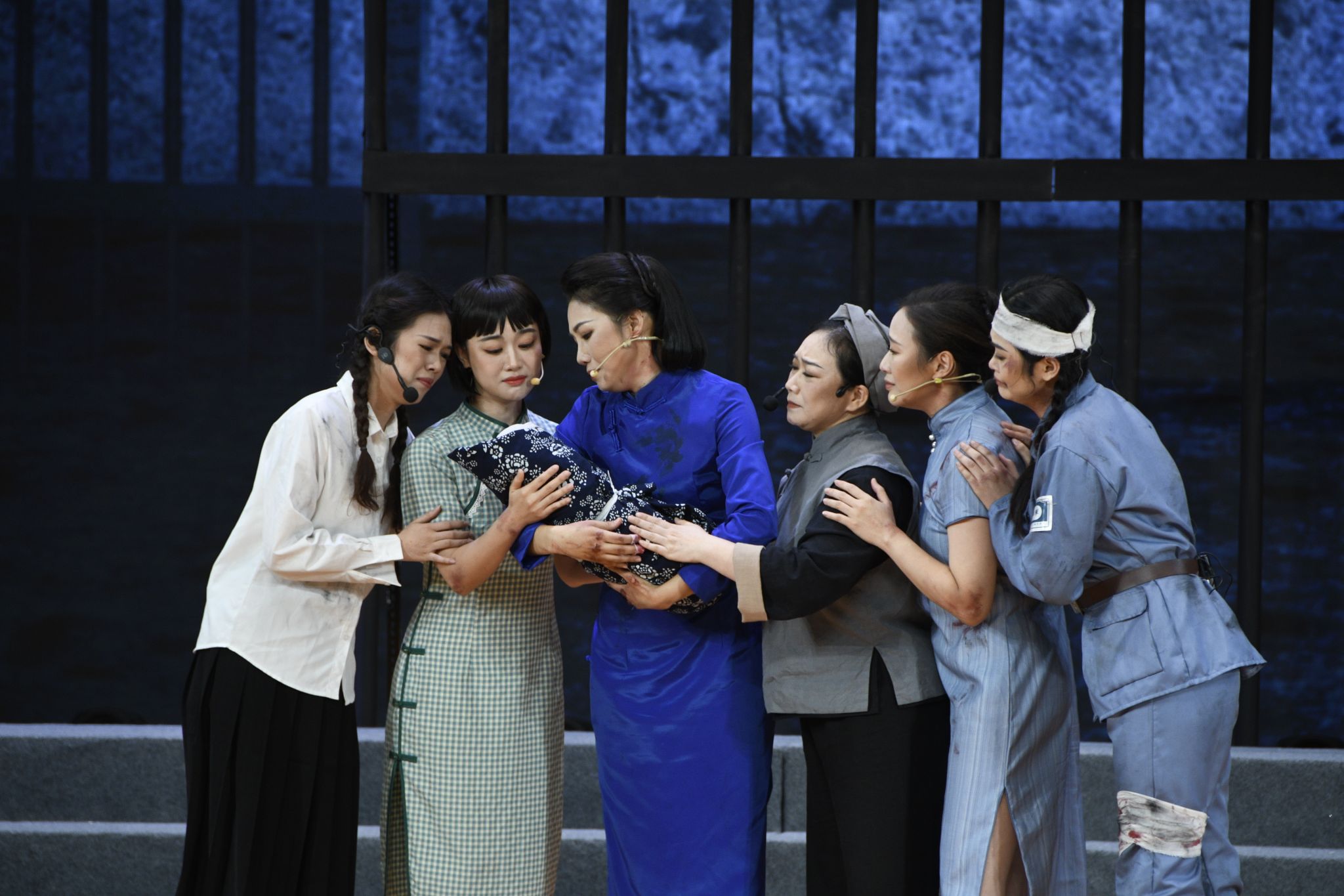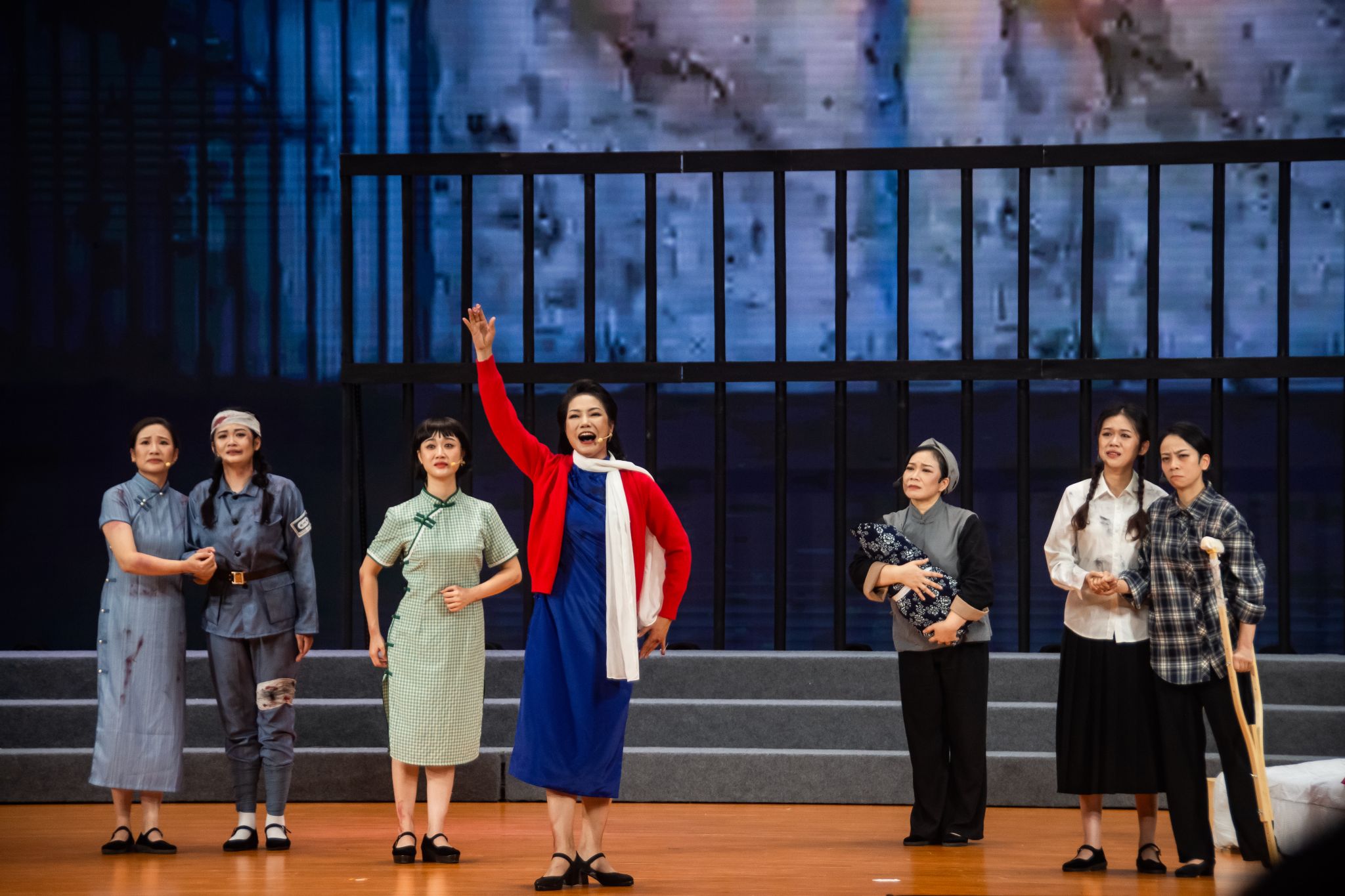 “紅巖上梅開(kāi),千里冰霜腳下踩,三九嚴(yán)寒何所懼,一片丹心向陽(yáng)開(kāi)……”隨著幕布拉開(kāi),經(jīng)典旋律扣人心弦,動(dòng)人情節(jié)上演。江姐堅(jiān)定的革命決心和忘我的革命精神融入唱詞和動(dòng)作中,讓觀眾沉浸其中。