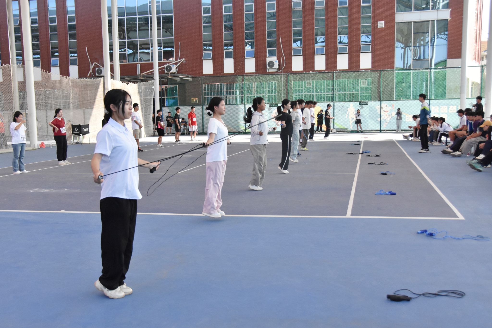 管理學院的10名運動員在比賽場地呈“一”字排開。隨著裁判員一聲令下,比賽正式拉開帷幕。管理學院的運動員迅速進入狀態,雙手緊握繩索兩端,兩臂屈肘抬平小臂,繩索快速旋轉,甩出“唰唰”的破空聲,腳步交替變換。在隊員們的共同努力下,管理學院跳繩總次數全場最高,獲得冠軍。