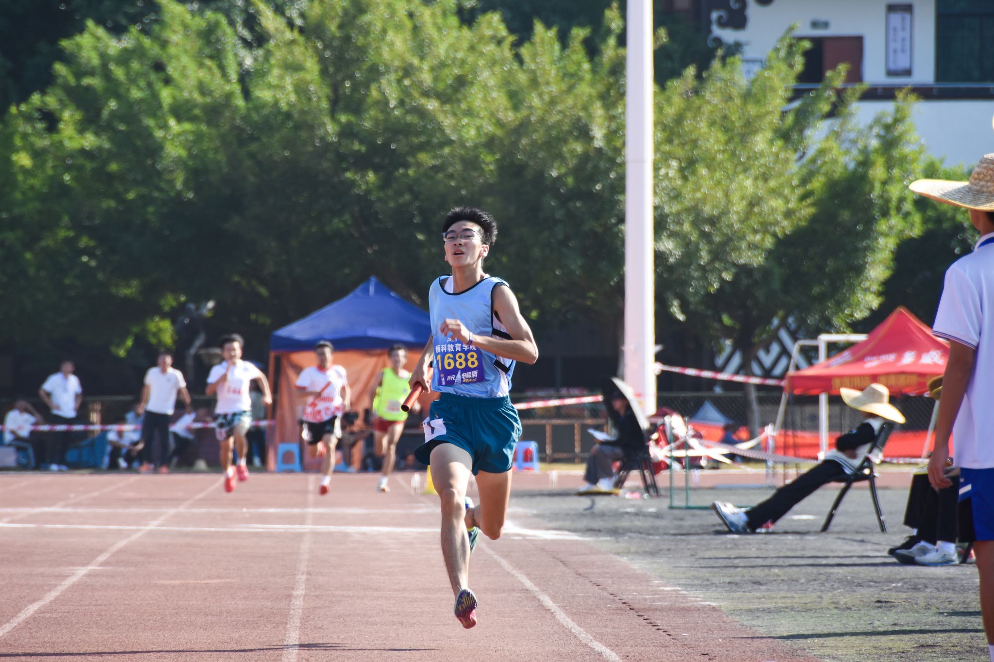 男子甲組4×100米決賽冠軍預科教育學院最后一棒沖刺