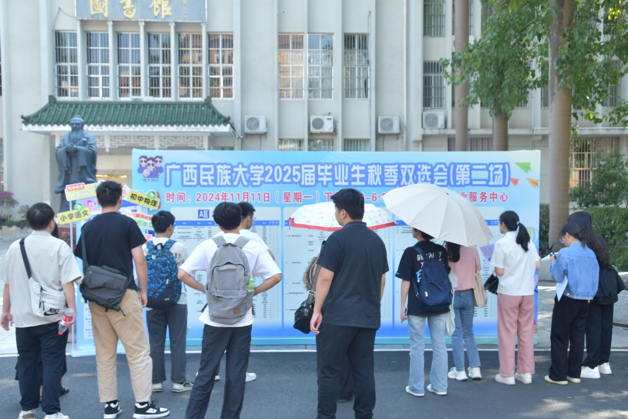 【大學(xué)生通訊社報(bào)道】11月11日下午,2025屆畢業(yè)生秋季雙選會(huì)(第二場(chǎng))在廣西民族大學(xué)相思湖校區(qū)舉行。我校2025屆畢業(yè)生及畢業(yè)生班輔導(dǎo)員到場(chǎng)參加。