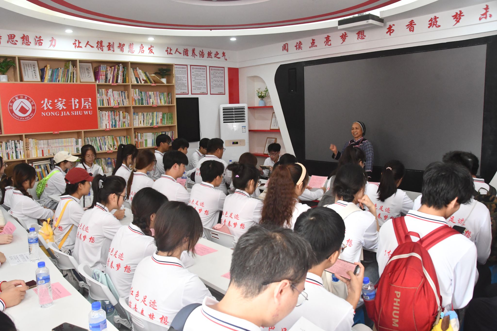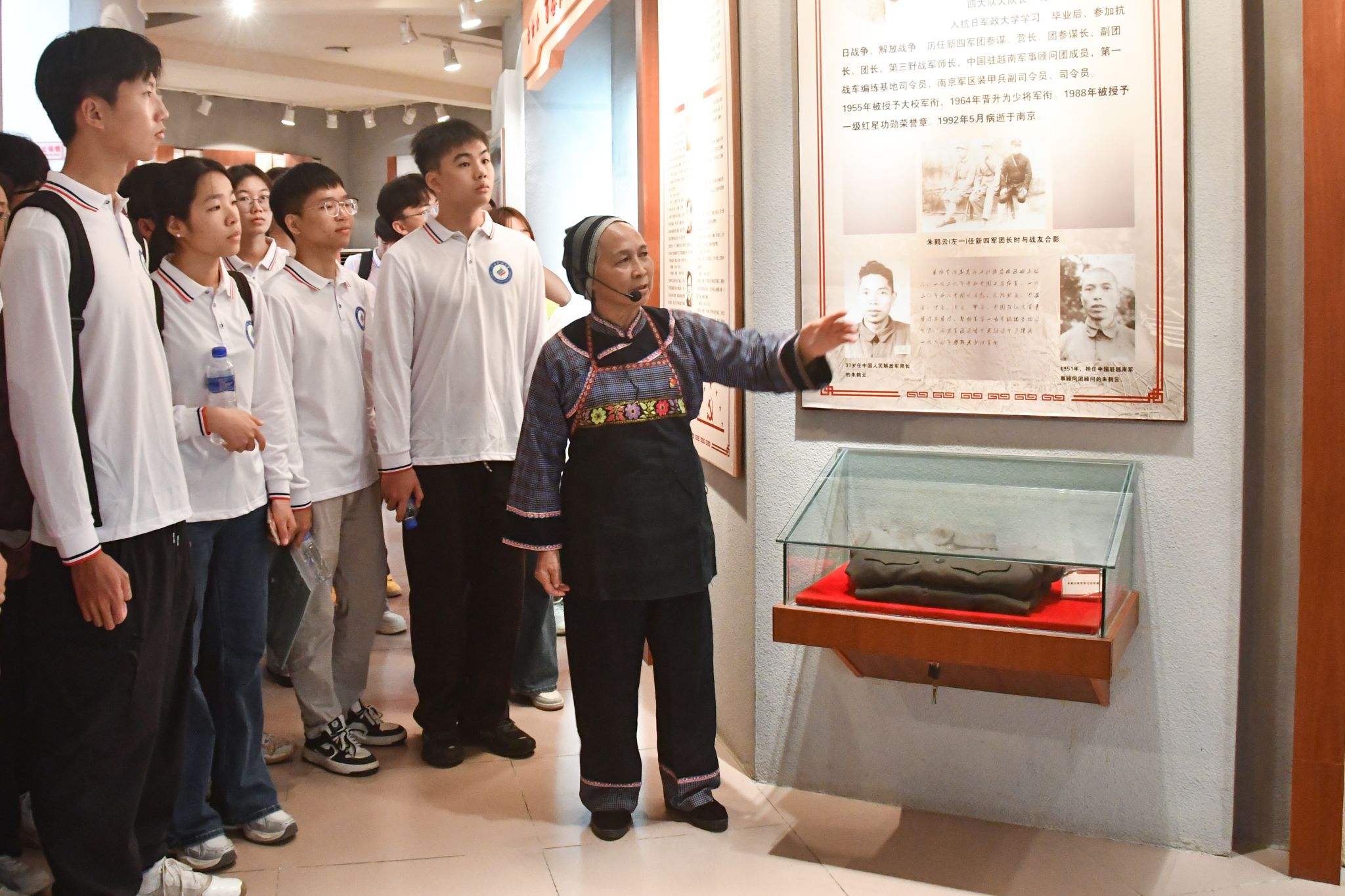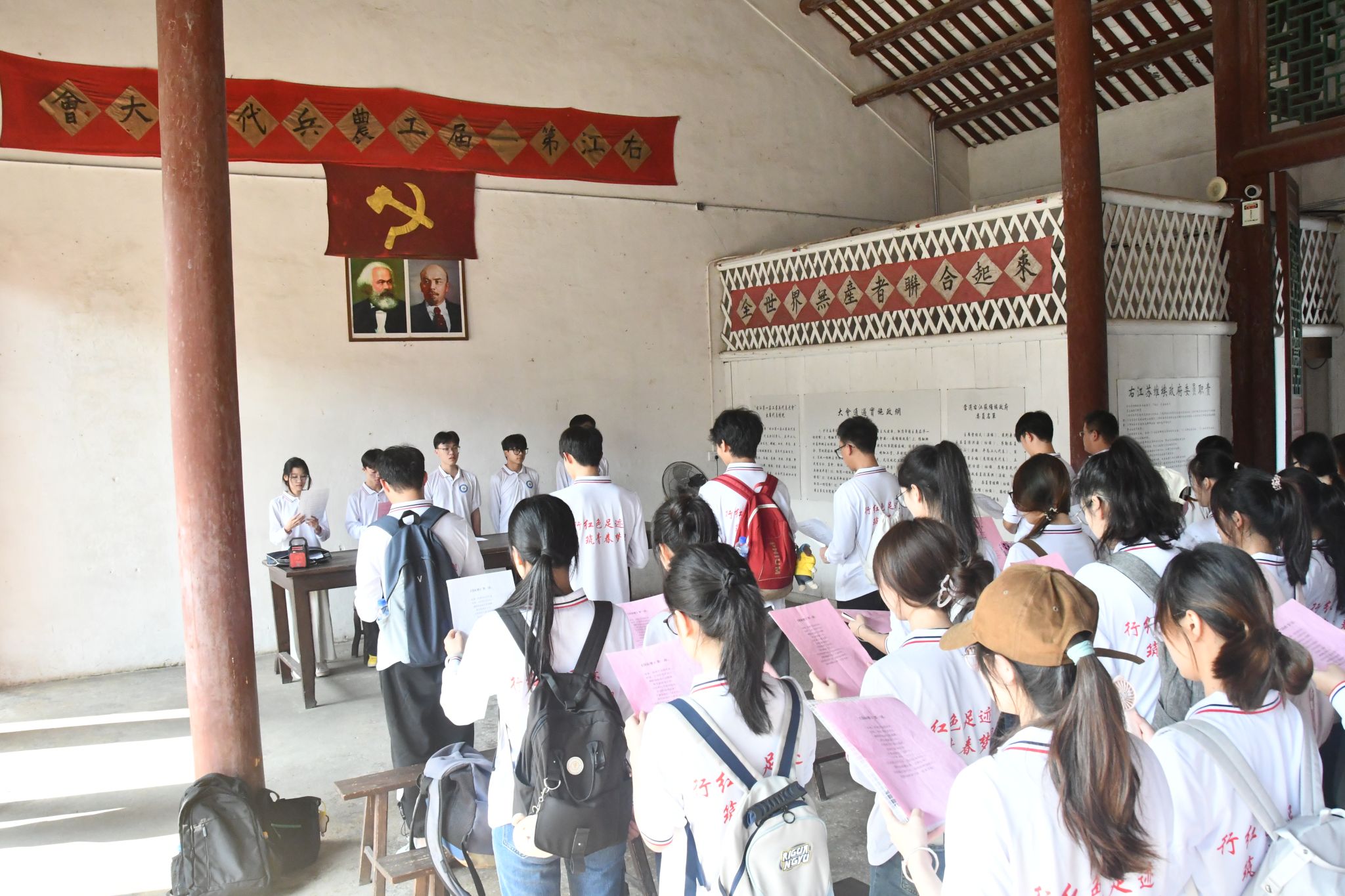 16日上午,研學隊伍前往百色市田東縣百谷紅軍村?!凹t軍后人”談志玲講述百谷紅軍故事、高唱紅歌、帶領同學們參觀紅軍學校,生動形象地講述了百谷村“敢作敢為、大膽探索、勇立時代潮頭,一路篳路藍縷、艱苦創業、勇毅前行”的歷史。